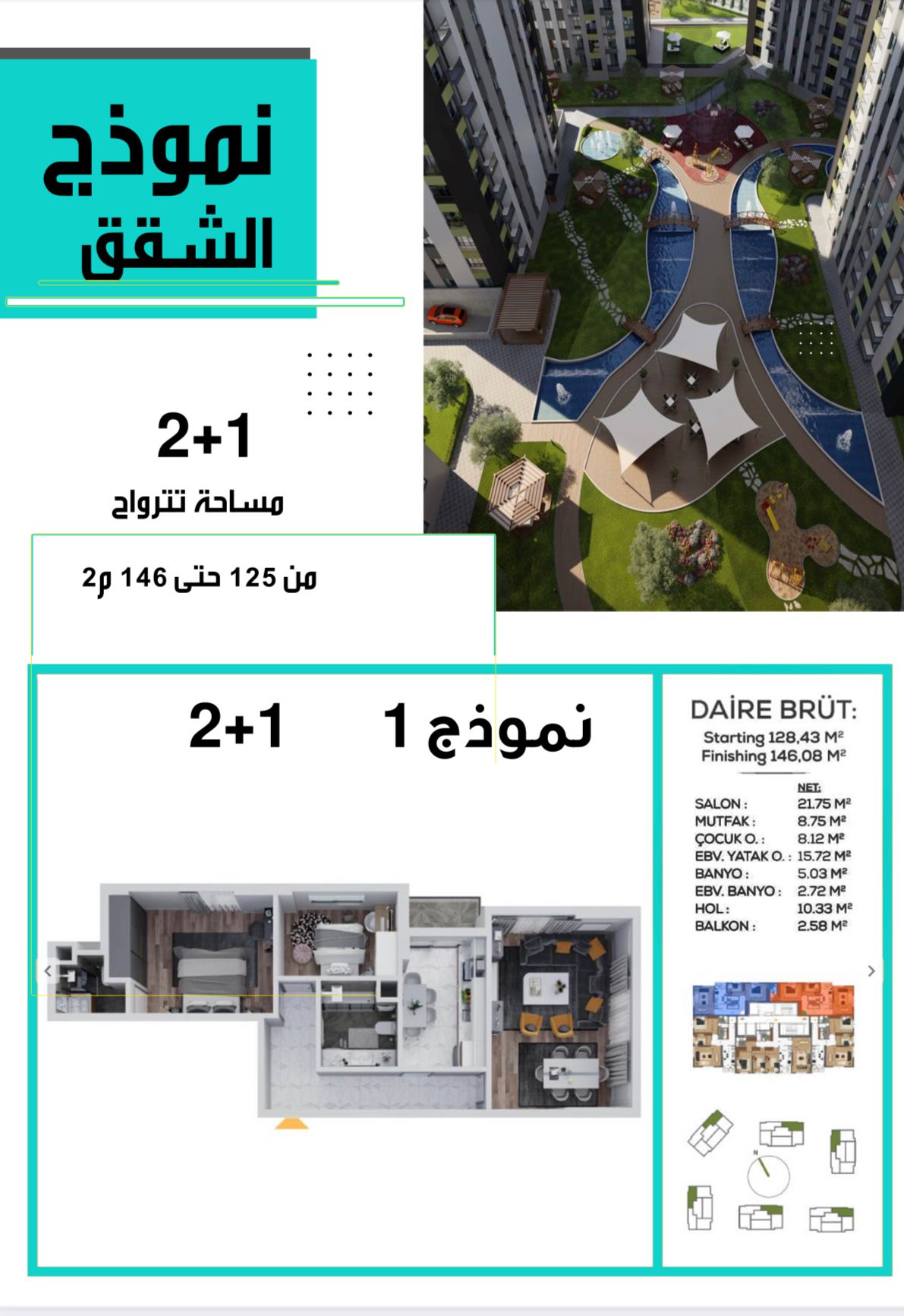 137 متر بروت 75 متر نت