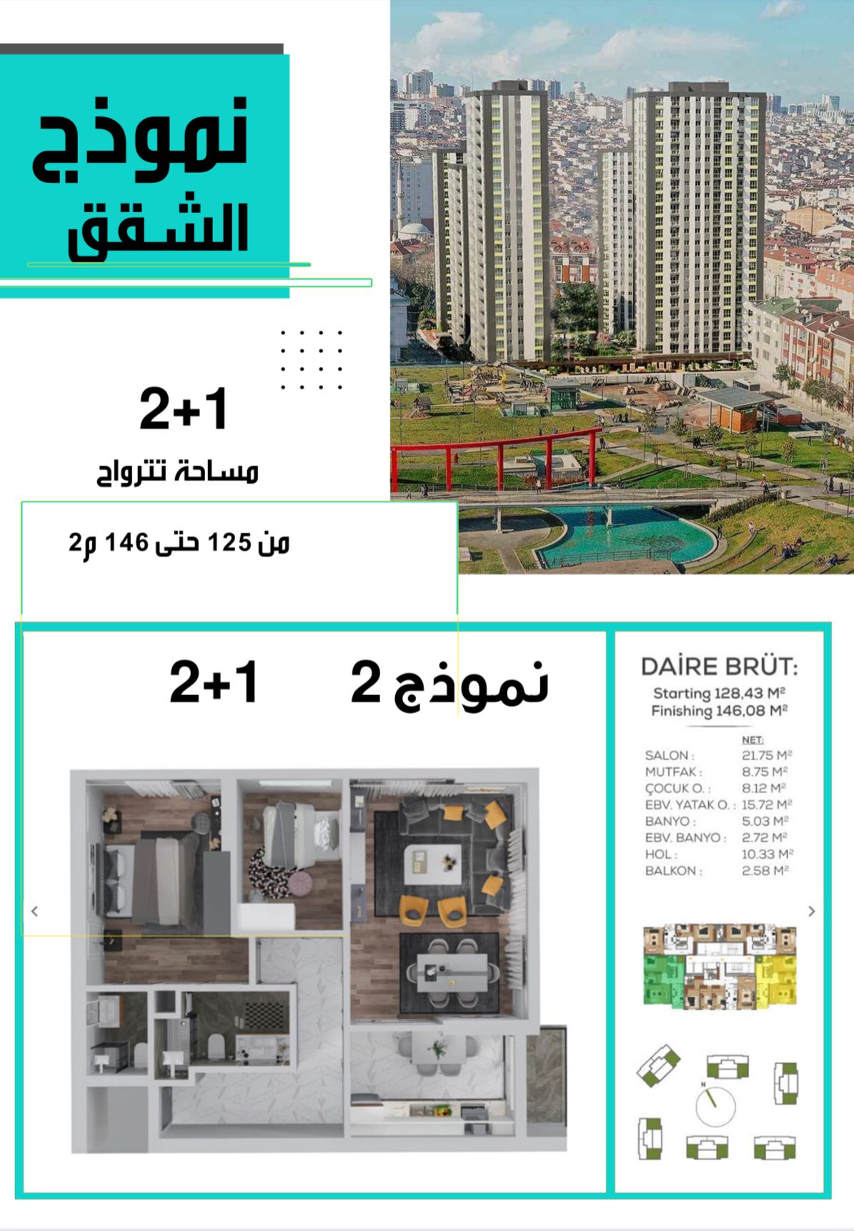 الشقة الواحدة معروضة للبيع بسعر ١٦٤ ألف دولار اي ما يعادل للمتر 37،600 ليرة تركية فقط موقع المشروع في وسط اسطنبول Selvi Park Evleri Satış Ofisi