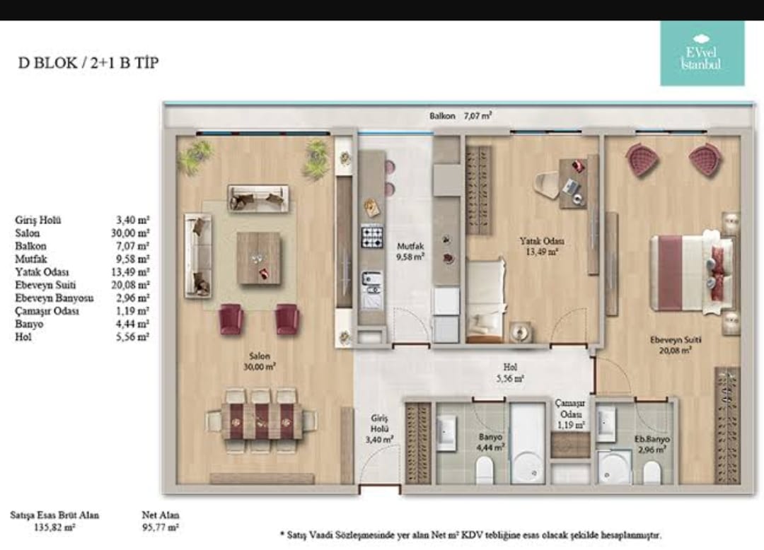 للبيع شقة 1+2 في منطقة إسطنبول ضمن مجمّع ( ايفل إسطنبول ) الطابق 8 البلوك D المساحة 123 متر